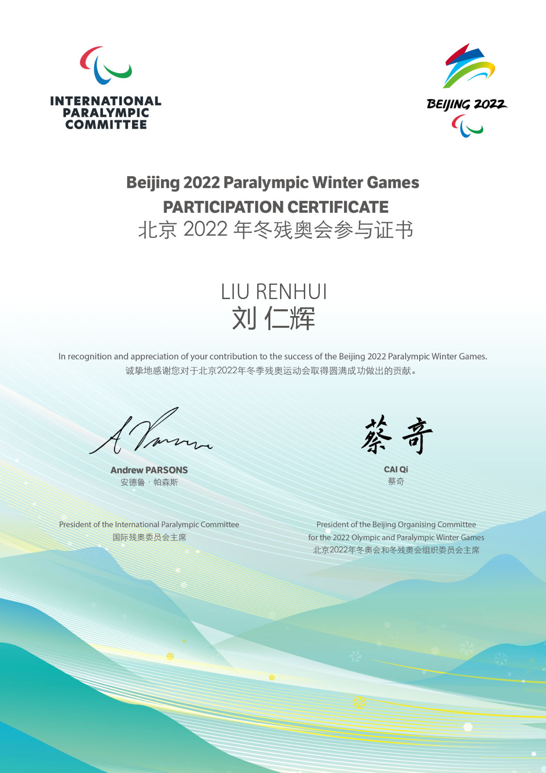 刘仁辉担任冬奥滑雪裁判